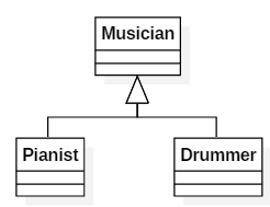예를 들어 음악가 형식을 기반으로 파생한 형식으로 피아니스트와 드러머가 있다고 가정할게요. “피아니스트는 음악가이다.”, “드러머는 음악가이다.” 처럼 일반화관계로 정의하기 적합한 관계죠.
