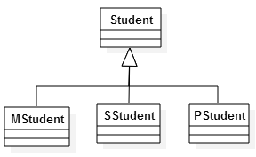 그리고 학생이 있으며 학생의 종류에는 마법학생, 운동학생, 학사학생이 있으니 마찬가지로 일반화 관계로 표현합시다.
