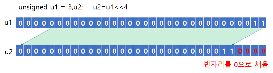참고로 왼쪽 쉬프트 연산은 빈 자리를 0으로 채우는 논리 쉬프트 연산입니다.