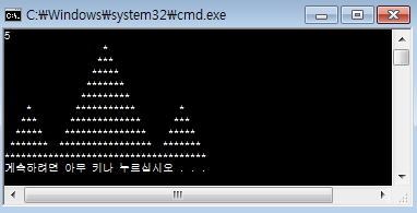 다음처럼 입력한 정수의 높이에 맞게 산봉우리를 출력하는 프로그램을 작성하시오.