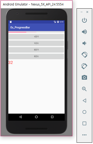 이번에는 진행 상태 정도를 표시할 때 많이 사용하는 ProgressBar를 이용하는 간단한 실습을 합시다.