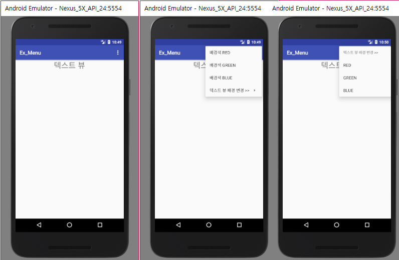 <item android:title="텍스트 뷰 배경 변경 >>" >