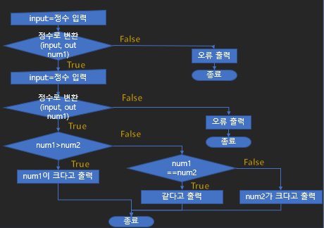 if(int.TryParse(input,out num1)==false)//조건(정수로 변환(input, out num1)이 실패)