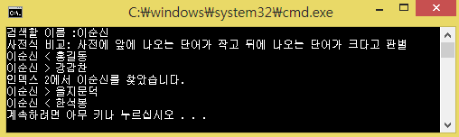 printf("사전식 비교: 사전에 앞에 나오는 단어가 작고 뒤에 나오는 단어가 크다고 판별\n");