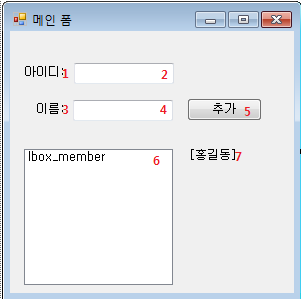 7 | lb_name2 | Label | Text 속성: [홍길동] |