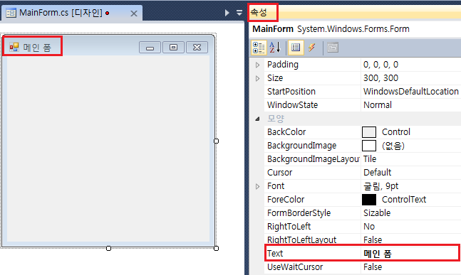 그리고 속성 창을 이용하면 디자인 창의 다양한 컨트롤의 속성을 효과적으로 설정하거나 확인할 수 있습니다.