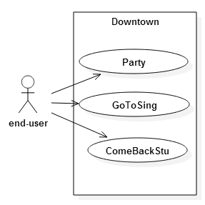 Usecase는 타원으로 표현합니다. 그리고 액터와 Usecase 사이에 사용하는 곳에서 상대에게 실선과 화살표로 표현합니다. 이 외에 Usecase 사이에 스테레오 타입으로 extend와 include 관계가 있는데 여기에서는 다루지 않습니다.