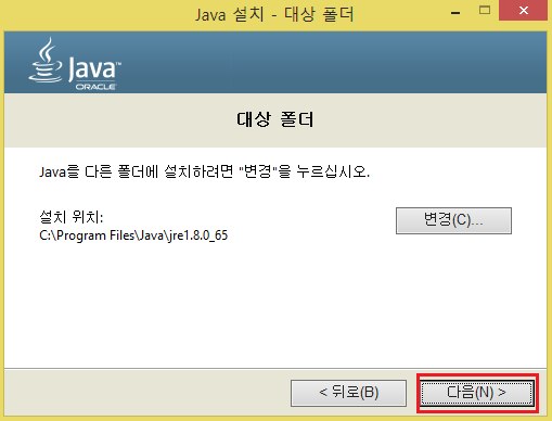 대상 폴더 창에서 다음 버튼을 클릭하세요.