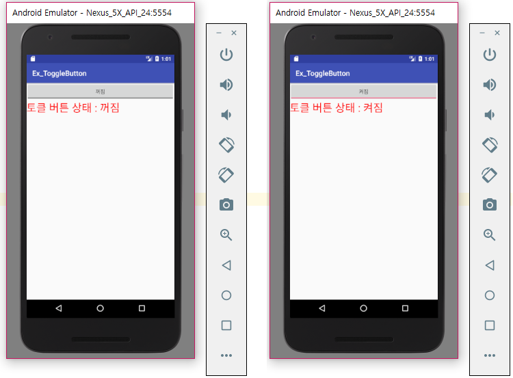 이번에는 ToggleButton을 사용하는 간단한 실습을 합시다.